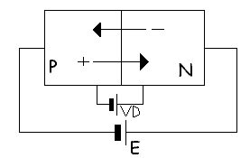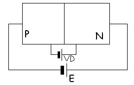 Polarizzazione diretta: la giunzione P-N ha la proprietà di lasciar passare facilmente la corrente se viene polarizzata direttamente con un resistenza sufficientemente bassa, difatti se si collega un generatore di tensione (E) alla giunzione, con il polo positivo collegato alla zona P e col polo negativo alla zona N, e se la tensione del generatore è superiore alla tensione di giunzione (Vd), le cariche riescono a passare attraverso la giunzione dando luogo ad una corrente elettrica (fig. 7.1).