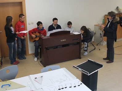 Eine kleine Gruppe hochmotivierter Teilnehmer/innen setzte es sich zum Ziel, die Vernissage mit einem selbst komponierten Lied zu eröffnen. So machten sie sich gleich ans Texten, Komponieren, Harmonisieren.