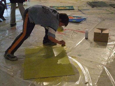 Ziel des Workshops war es den Schüler/innen diese Erfahrung zu eröffnen. Mal nicht ergebnisorientiert arbeiten dürfen, ausprobieren, testen, staunen, scheitern und Kunst fühlen und spüren. Farben spritzen, klecksen, kleben, stempeln, sprühen und catchen.